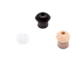 Soft rubber earbuds for acoustic tube earpieces. Available in clear, beige, or black.