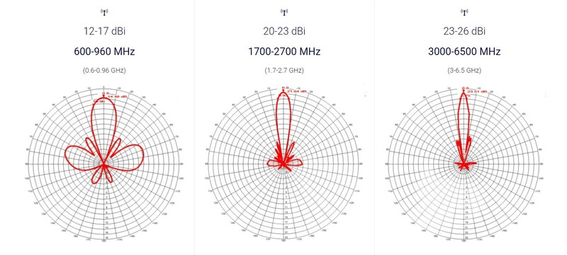 Gain (dBi) 15 Low / 20 Mid / 25 High